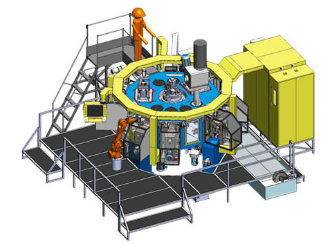 * 车床结合CNC多工位组合机床* 利用CCD视觉辨识工件角度并指挥机械手夹取工件* 多轴机械手与伺服滑台合作* 工件上进行雷射雕刻* 利用L