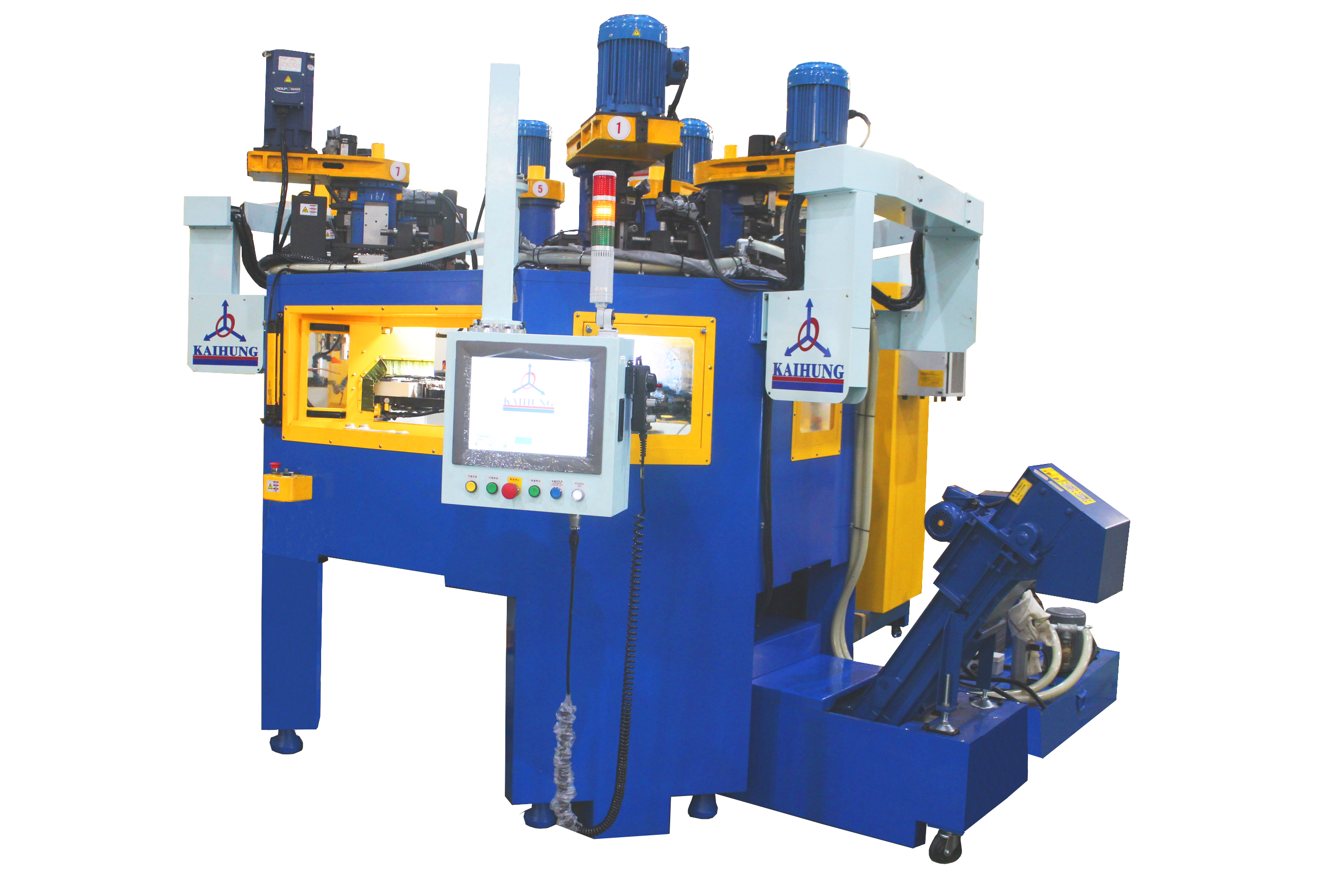 * 可规划上、中、下伺服滑台同步加工,一次完成多项加工项目* 依工件需求,主轴可付予钻孔,攻牙,去毛刺等功能* 以机械手臂搭配送(下)