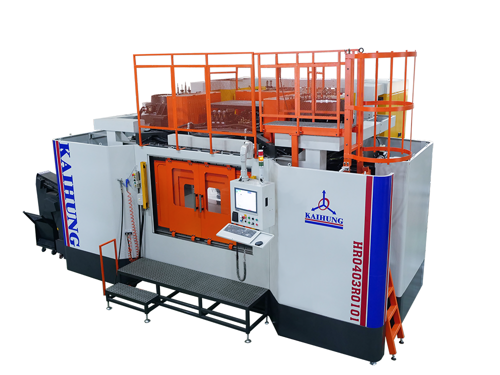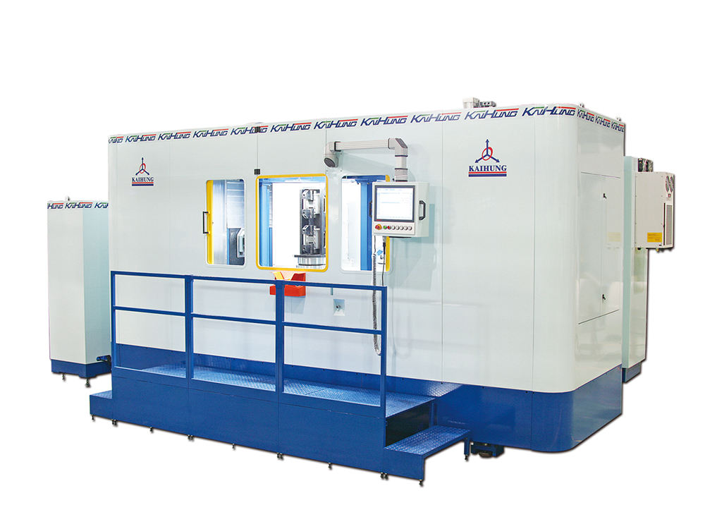* 机床共 4站、1站为上 下料站,另外 3站可同时对工件加工。*各站均有独立的主轴、刀库与第四轴,且加工程式各自独立,相当于 3台卧式