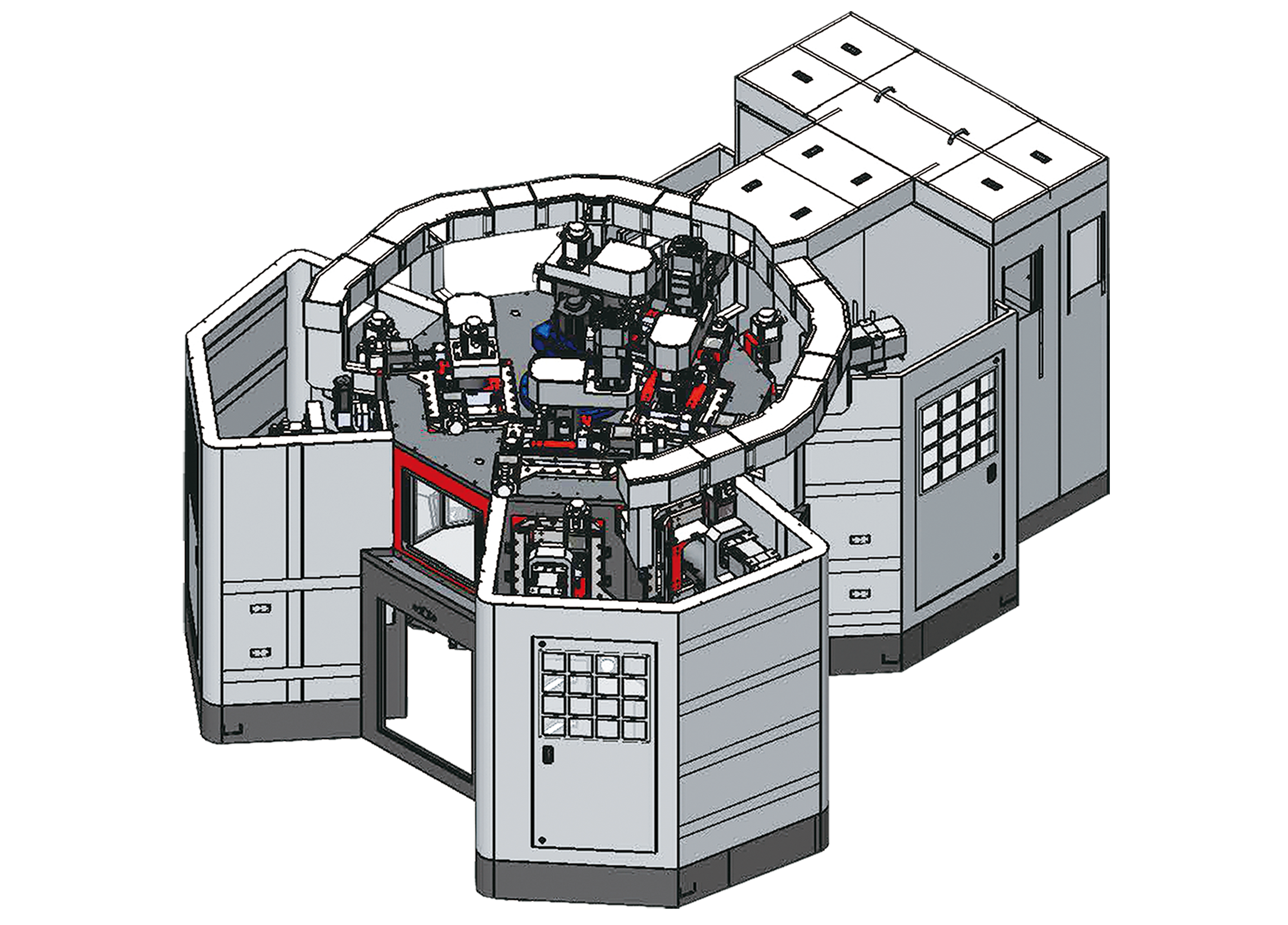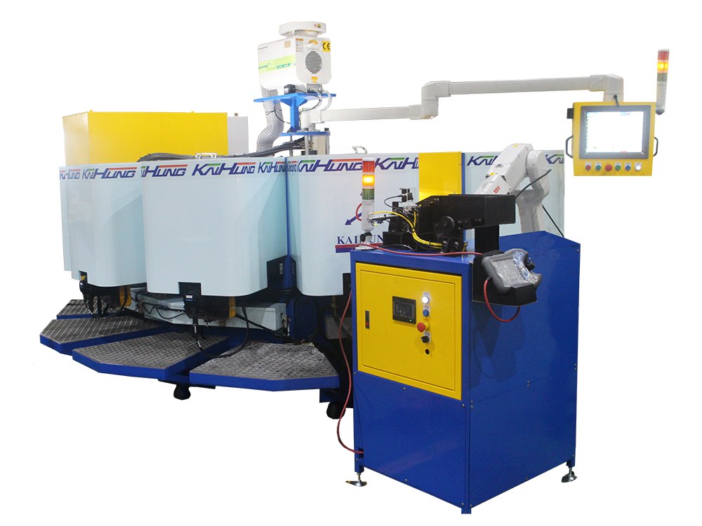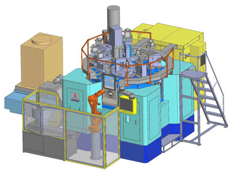 * 车床结合CNC多工位组合机床* 利用CCD视觉辨识工件角度并指挥机械手夹取工件* 多轴机械手与伺服滑台合作* 工件上进行雷射雕刻* 利用L